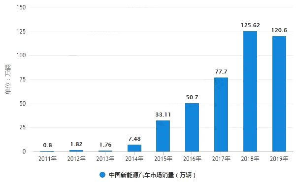 根據工信部在論壇上公開的數據,2019年我國新能源汽車銷量120.6萬輛,2018年這一數據為125.6萬輛,下降約3.98%。這是我國自2009年大力推廣新能源汽車市場發展以來,首次出現新能源汽車年度銷量下滑。